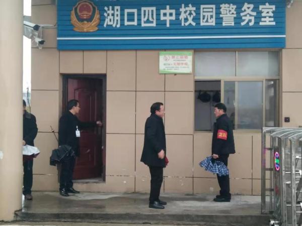 3月5日早晨7:00,湖口四中全体行政及新组建的校园护卫队在谢俊校长的带领下,对学校内外进行安全隐患排查和巡视。